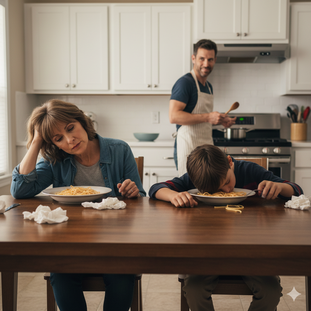 “It's my mom's French beef stew. I found the old recipe,” Robert said, his smile a little strained in the kitchen light. “Eat up, Sarah. I know you're tired.”