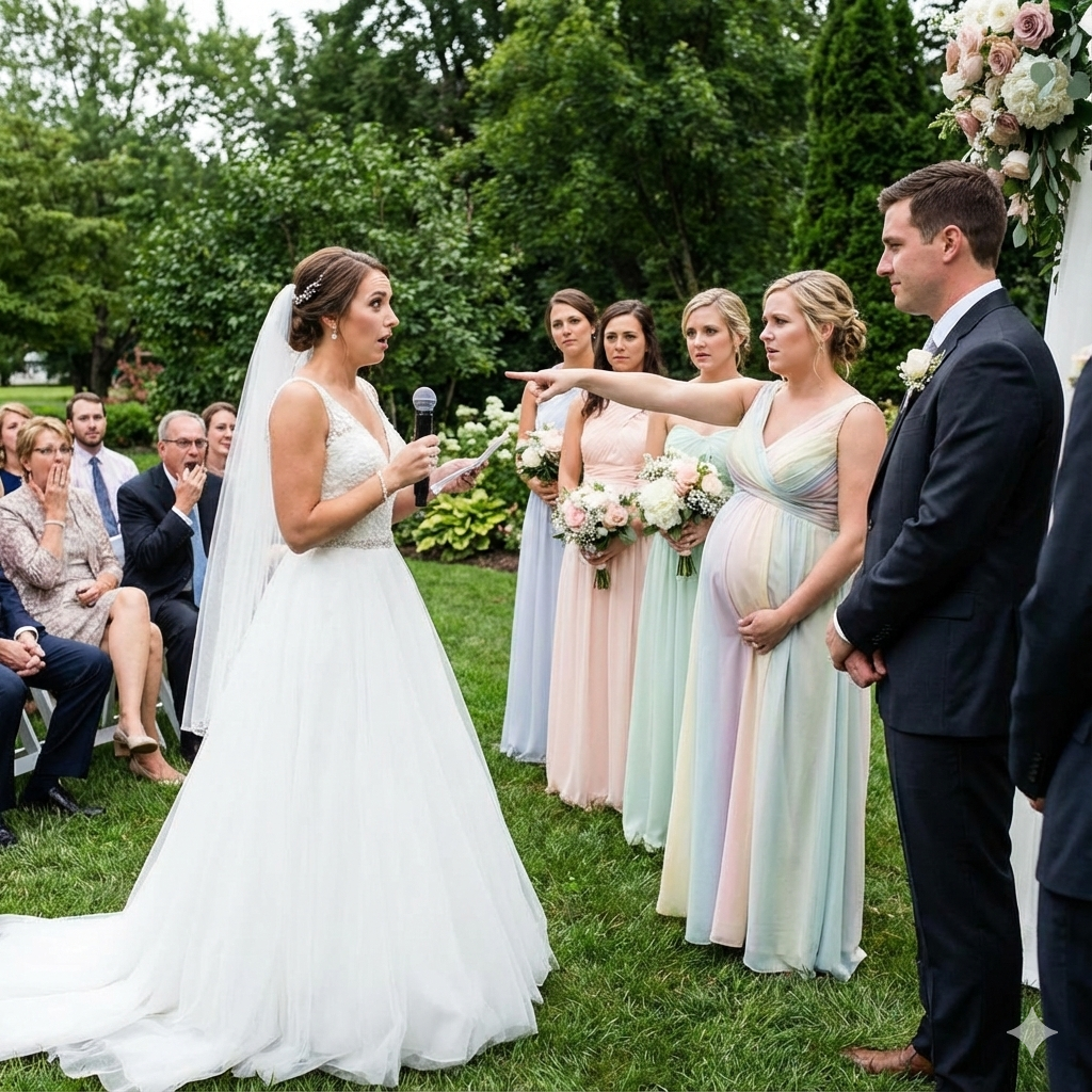 On my wedding day, as I was about to read my vows, my bridesmaid stood up and announced she was pregnant with my husband's child. All 300 guests were stunned. But instead of crying, I just smiled and said, “I've been waiting for you to finally tell everyone the truth.” Her face turned pale. She had no idea what was about to happen next…