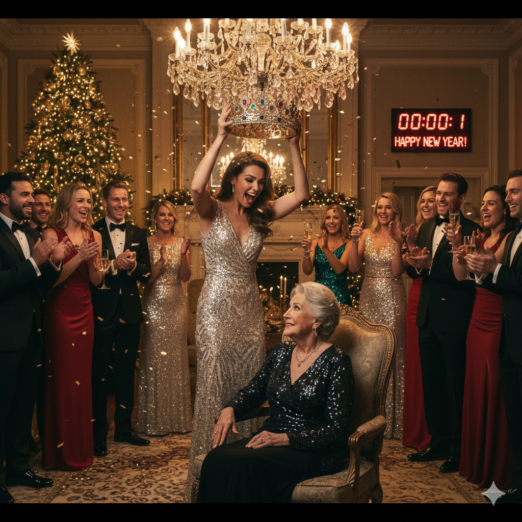 “The new head of the family!” my daughter shrieked in the middle of a Texas New Year’s Eve party, placing a golden crown on my mother-in-law’s head right in my living room, the guests cheering and applauding non-stop